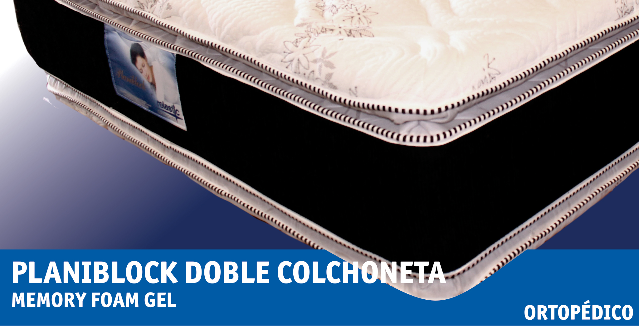 - Tela de punto importada capitonada con 20 mm. de espuma densidad 30 kg. y delcron. Colchoneta superior acojinada con 30 mm. de espuma memory foam con gel densidad 60 kg. combinada con 12 mm. espuma super suave.
